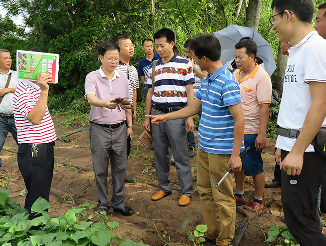 专家们先是前往田间作调研,查看了那毛村东边坑番薯基地,参观了番薯收集分拣中心,现场解答农户的技术疑问。通过实地调研后,专家一致认为那毛村适合走番薯产业脱贫的道路。接着,大家共聚那毛农民合作社培训室,畅所欲言。省总农艺师陆国煌指出,那毛村番薯产业存在的问题是普遍性问题,也具有那毛村的特殊性。这些问题归根结底都是科学的问题,那毛村一定要利用好省农科院、湛江农科所等技术平台,常与技术专家交流,共同攻关。坚持经营好“福平”品牌,坚持以一个品种为主多品种为辅的发展道路,坚持把安全生产放在第一位。其他专家也针对那毛村番薯产业存在的问题,一一作了深刻的发言。参加研讨会的番薯种植户纷纷表示,专家为他们指出了问题的根本,找到了解决问题的方向,对番薯产业的未来充满了信心。