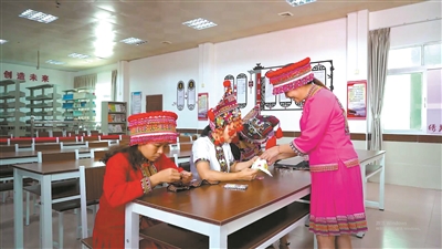 为了让神秘的刺绣重获新生,2019年1月,游溪镇新时代文明实践所“妈古”瑶绣传承志愿服务队成立了。该服务队以传承和发展国家级非物质文化遗产瑶绣为宗旨,以“妈妈制造”为依托,为广大妇女传授瑶族刺绣技艺,培训班里“妈古”为参加培训的妇女们详细讲解瑶绣图腾名称,反面刺绣的基本原理和选材、设计、绘图、制作等绣品知识,并从穿针引线开始一步步手把手教学,从反面找位置穿针,到线颜色的搭配,图案刺绣的走线等,来学习瑶绣的妇女都对瑶绣产生了浓厚的兴趣,并纷纷加入刺绣的队伍。游溪镇“妈妈制造”自2019年1月成立以来,共开展瑶绣培训班二十多期,参训妇女2000多人次,帮助更多的贫困户、单亲家庭、低保户、留守妇女增加收入。
