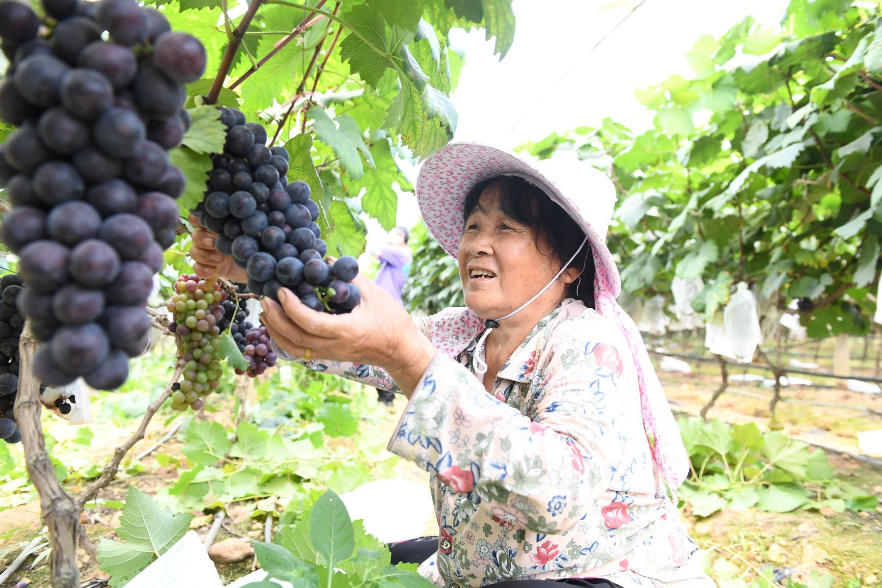 葡萄园离赖宜娇的家,不到一公里。平时忙完葡萄园的事情,还可以兼顾家中的农活,照顾家人。50多岁的赖宜娇说,自己年纪大了,进城找工作难,能够在家门口就业,而且还是从事农活,做得踏实且开心。
