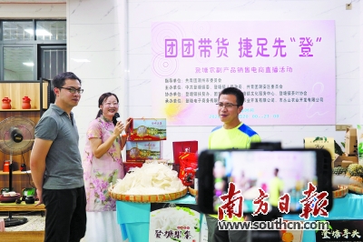 在潮安区登塘镇,登隆电子商务有限公司的农产品直播带货活动办得红红火火。许钰敏 摄