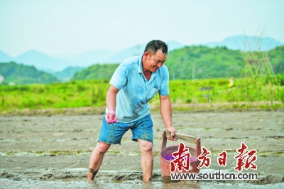 清远坚持授人以渔,让贫困群众有了一技之长。图为已脱贫的朱岗村村民吴站辉在田地里播种。 曾亮超 摄