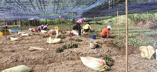 在育苗棚内,当地村民正为来年培育南药种苗