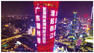 1月29日晚,潮州柑亮相广州塔,向全城及全世界送上来自潮州的新年祝福。