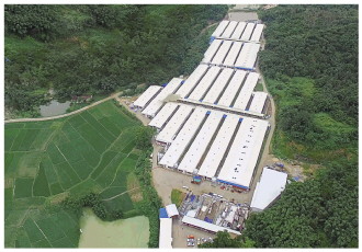 温氏养殖小区,政企合力助推贫困户脱贫。