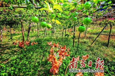 园内养鸡、鸡粪养园。在扶贫工作队的帮扶下,靠着勤劳的双手,曾经的贫困户张火胜摇身一变成为了“小老板”,带动着其他村民增收致富。